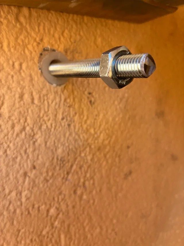 Una vez tenía la estructura montada, hicimos los agujeros correspondientes en lis listones y la pared y decidimos usar taco químico para que quedase bien asegurado.