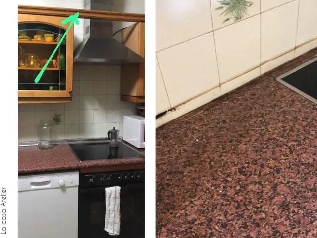 Mi hermana me pidió ayuda para mejorar su cocina pero sin gastarse dinero. Un lavado de cara que pudieramos hacer más o menos rápido nosotras mismas. La verdad que la cocina daba un poco de grima. Tiene 45 años y está muy viejita.