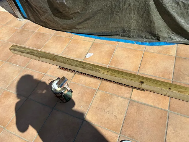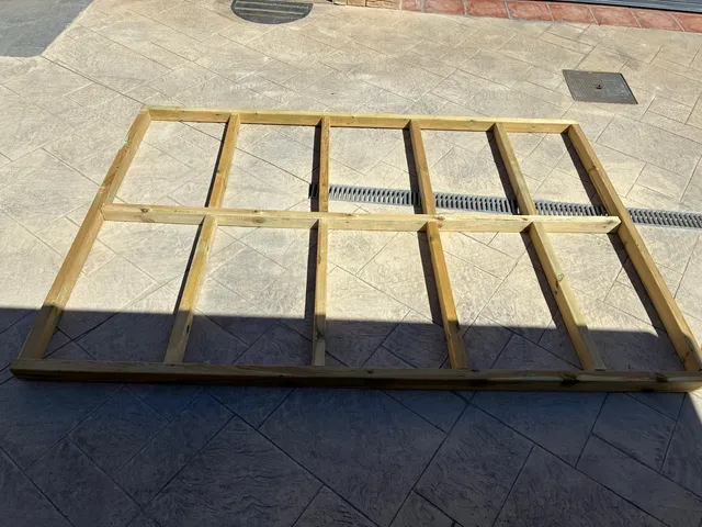 La idea era crear una estructura reticular, unida al muro del garaje, a la entrada a la cocina y compré un pilar de 9x9cm, que iba a usar en el punto más alejado sin sujeción.