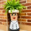 El cuerpo y la cabeza se formaron con botes de pintura de distintos tamaños.