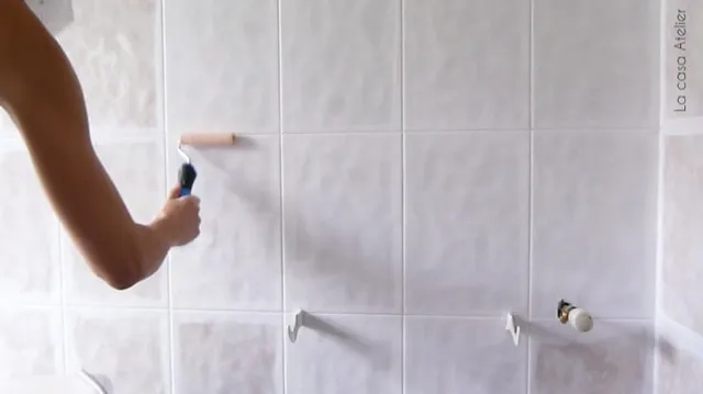 Usamos la pintura que para los muebles, esmate Luxen azulejos y muebles. Como con los muebles es clave limpiar muy bien los azulejos y aplicar la pintura en capas finas con rodillo.