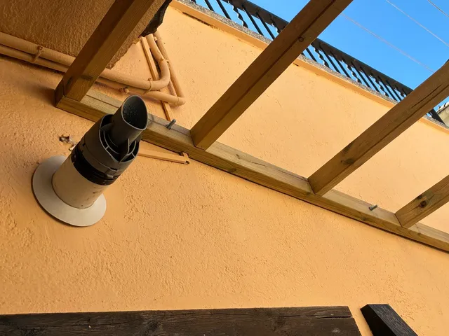 Entre la cocina, el garaje y el patio tenemos un pasillo al que nunca acabamos de encontrarle un uso más allá del paso entre espacios, así que se me ocurrió construir una pérgola. Con esta pérgola conseguimos tener el acceso al garaje a resguardo de la lluvia, evitamos salpicones en la cristalera en los días de lluvia, hemos ganado algunos metros más cubiertos, para poner un par de sillas con una mesita de café, o las bicicletas.. Además, siendo el techo transparente, no perdemos luz y calor durante el invierno y en verano probablemente agregaremos alguna especie de toldo o plantas que den sombra y ayuden a mantener la cocina más fresca.