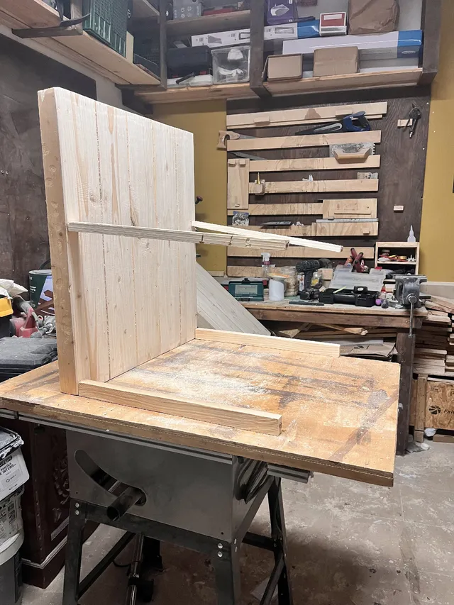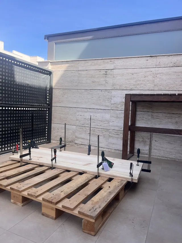 🛠️ Materiales Listones de madera (aprox. 12 x 6 cm) Tableros de pino macizo (60 x 200 cm, x2) Cola para madera Espigas de madera Masilla para madera Aceite de teca (u otro protector) Tira LED (opcional) Listón para fijación en pared
